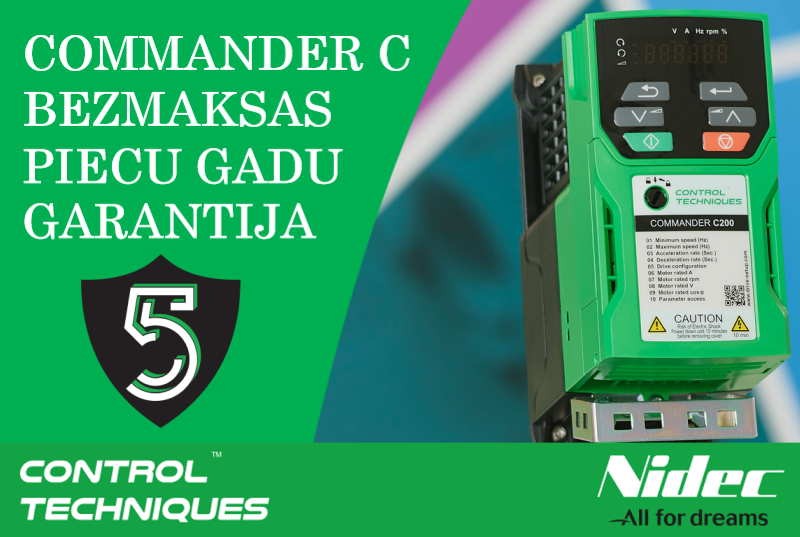 Pēdējo 45 gadu laikā Nidec | Control Techniques automatizācijas pasaulē ir ienesuši jaunas tehnoloģijas un inovācijas. Tagad jūs varat iegādāties Commander C sērijas frekvences pārveidotājus, droši zinot, ka pirkumam ir pievienotā vertība, ko piedāvā 5 gadu garantija, kas apliecina to izcilos uzticamības un izturības rādītājus.