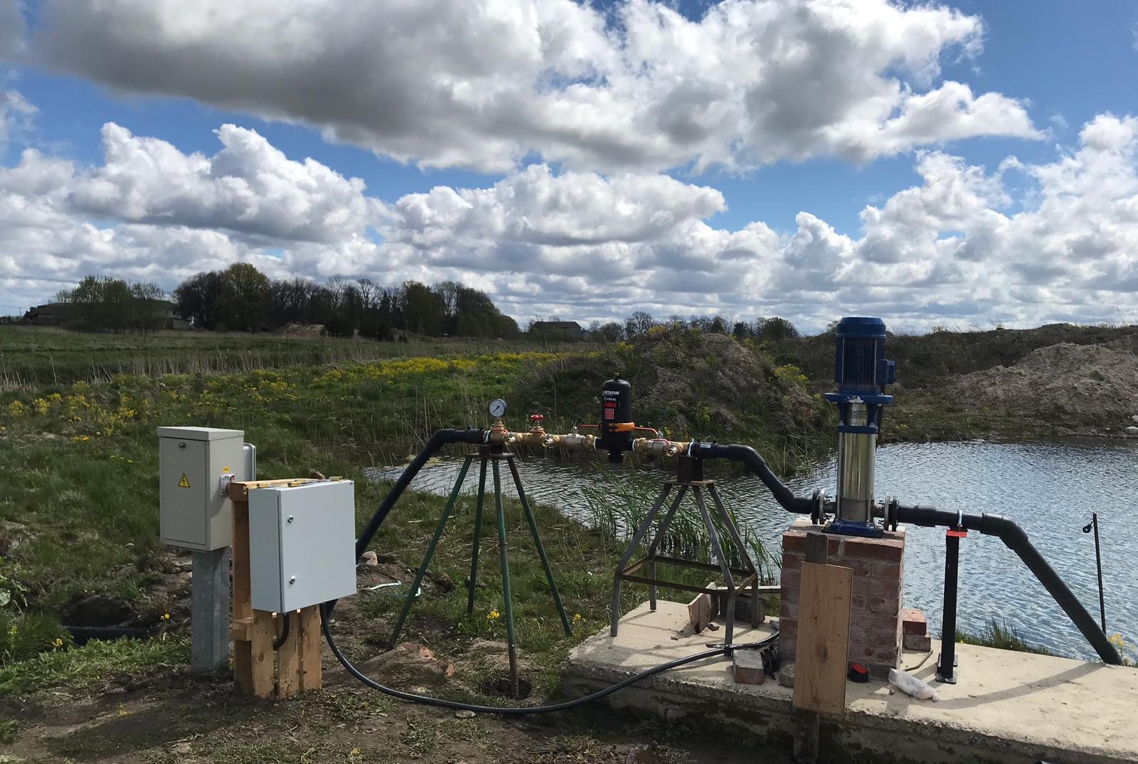 Mūsu izveidotā vadības sistēma ir paredzēta, lai nodrošinātu drošu un ekonomisku spiediena uzturēšanu. Sistēma tiek darbināta izmantojot tikai Control Techniques frekvences pārveidotāju un spiediena devēju. Pēc mūsu izveidotās programmas tiek aprēķināts, cik ātri jāgriežas sūknim, lai uzturētu nepieciešamo spiedienu, tas nozīmē, ka sūknis neslēgsies iekšā/ārā, bet gan griezīsies noteiktā ātrumā, uzturot konstantu iepriekš sistēmā uzstādītu spiedienu. Tajā pašā laikā, ja ūdens patēriņš nokrītas līdz minimumam, sūknis tiks lēnām apturēts (neradot hidro triecienus, kas ir galvenais iemesls cauruļvadu bojājumiem), bet spiedienam atkal krītoties, tas atkal ieslēgsies un turpinās darbu.